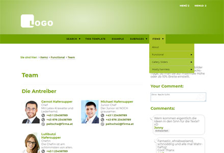 Description: Fitgrid-basiertes Template mit horizontaler Navigation, Inhalts- und Seitenspalte