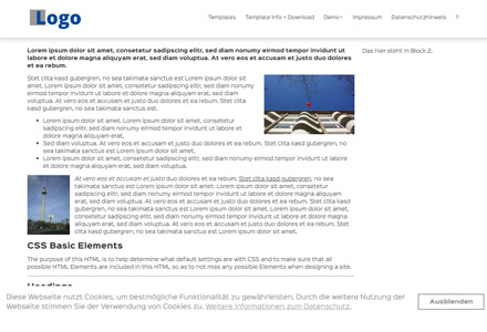 Description: Modernes Template mit Content- und optionaler Seitenspalte, optionalen breiten Blöcken darüber und darunter. Verwendet das fantastische Gridism CSS und die nicht minder fantastische Multilevel-Navigation von w3bits.com.