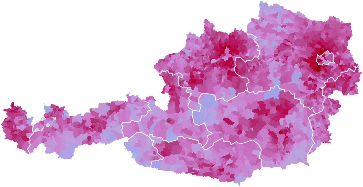 Testdaten: Vergleich durchschnittliches EInkommen (links) / Zustimmung zu FPÖ (rechts, FPÖ = in Deutschland ca: AfD)