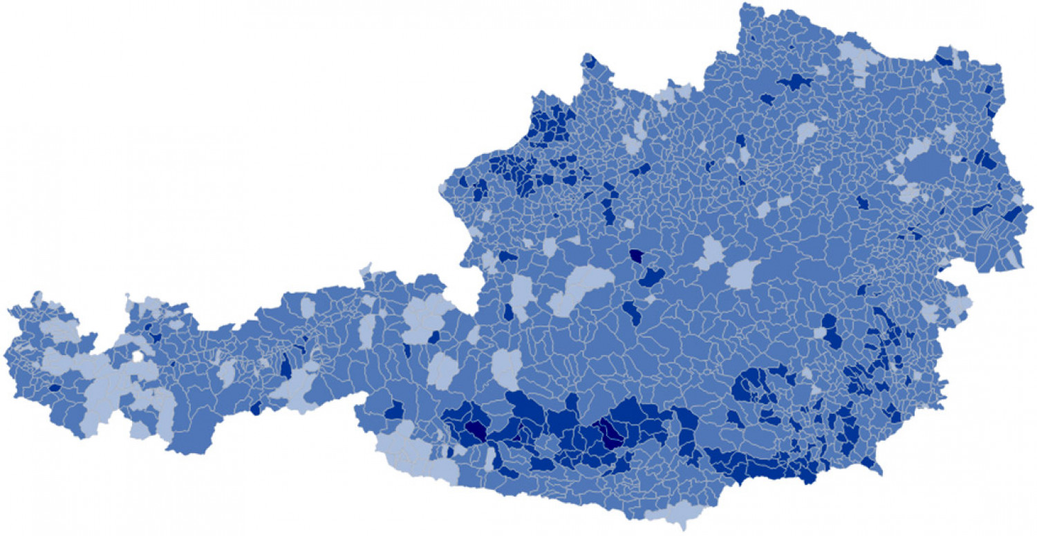 In den flachen Regionen ist der Zusammenhang deutlich, im wenig besiedelten Gebirge überwiegen andere Einflüsse.